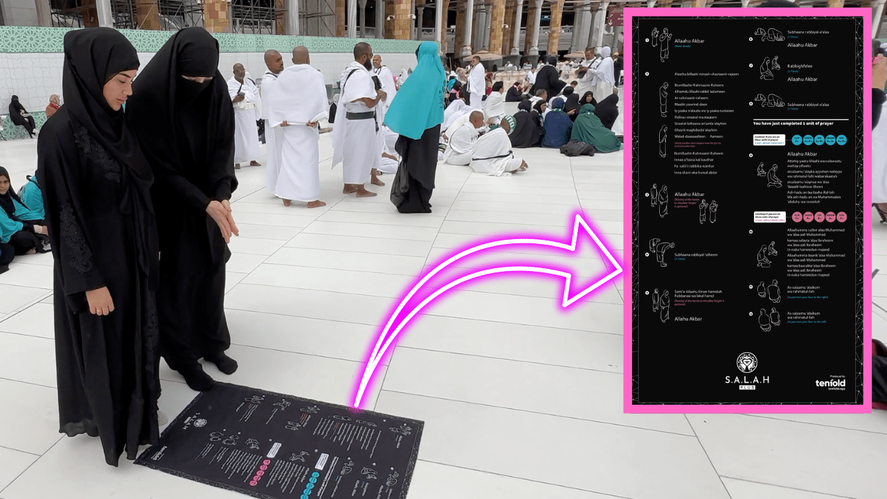 We will provide a free guided prayer mat with visual prompts and reminders, accurately laid out to help you in perfecting your salah.
