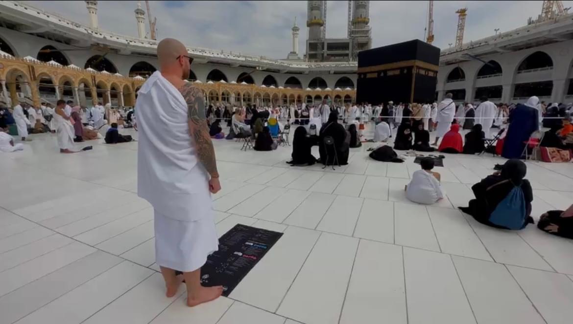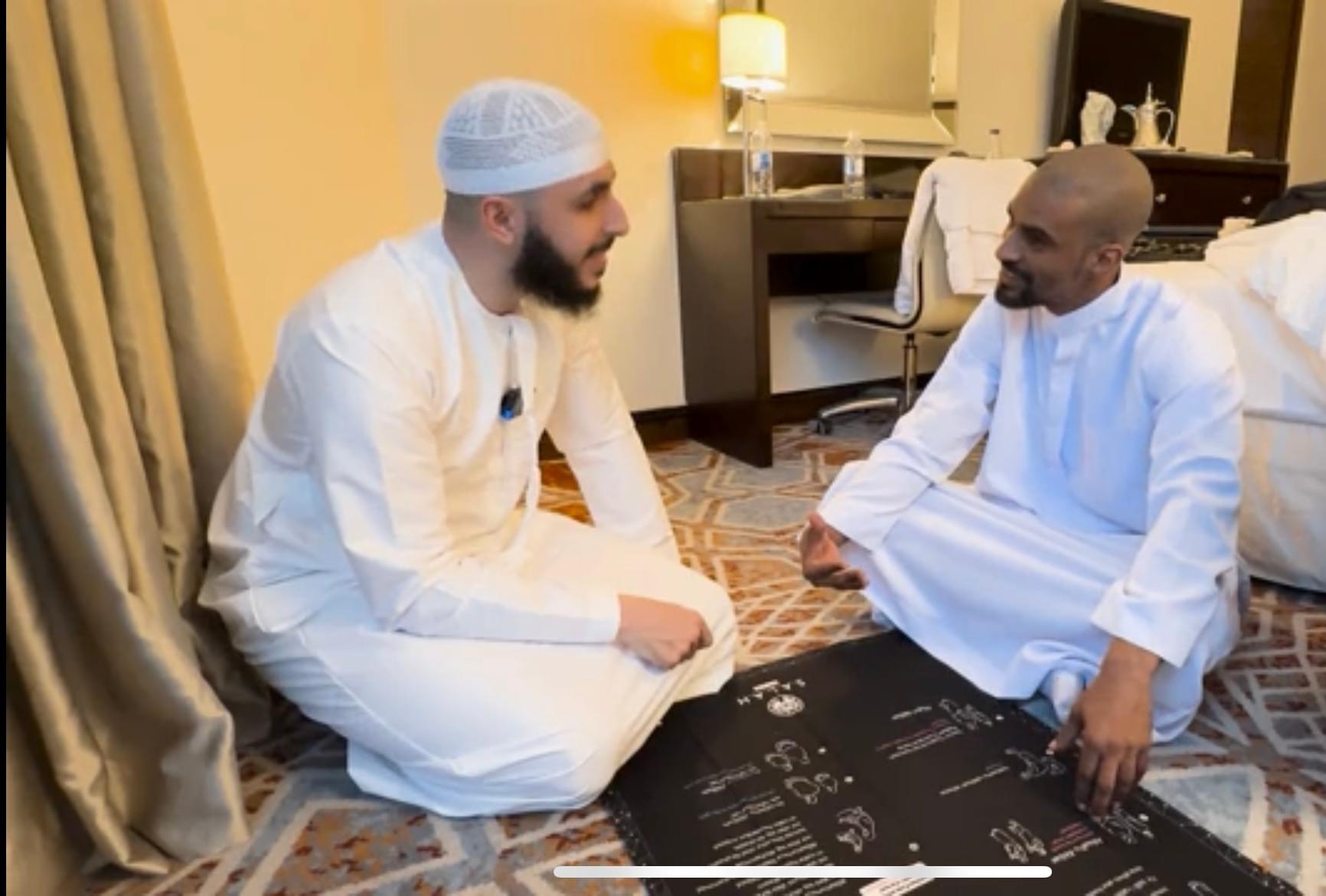 Khaled (aka Jack) is also a new Muslim who use to serve in the army. Here we are praying side by side in front of the Kabbah in Meccah as I teach him the basics of performing the salah using our Salah Plus prayer mat.